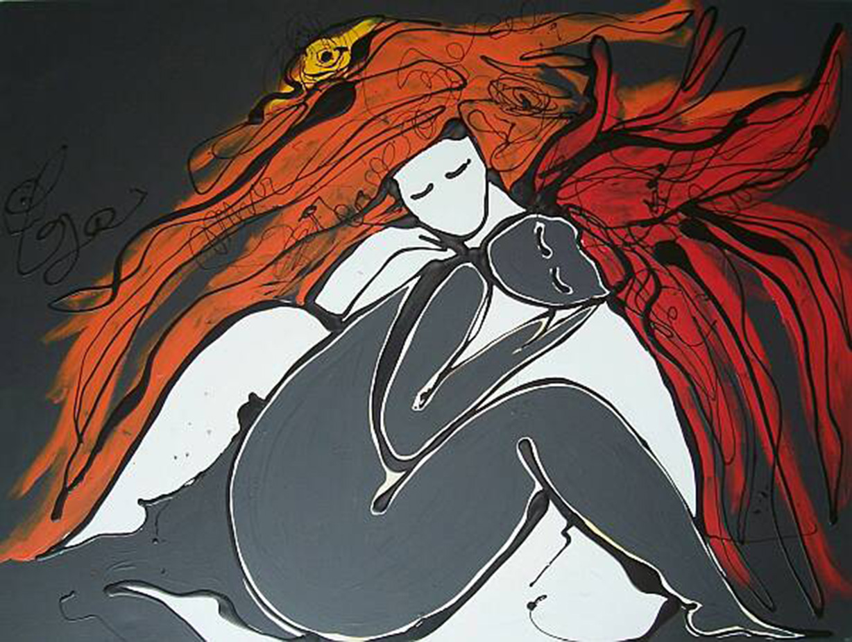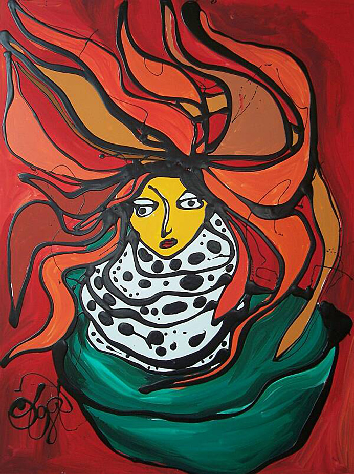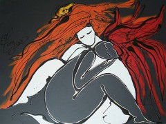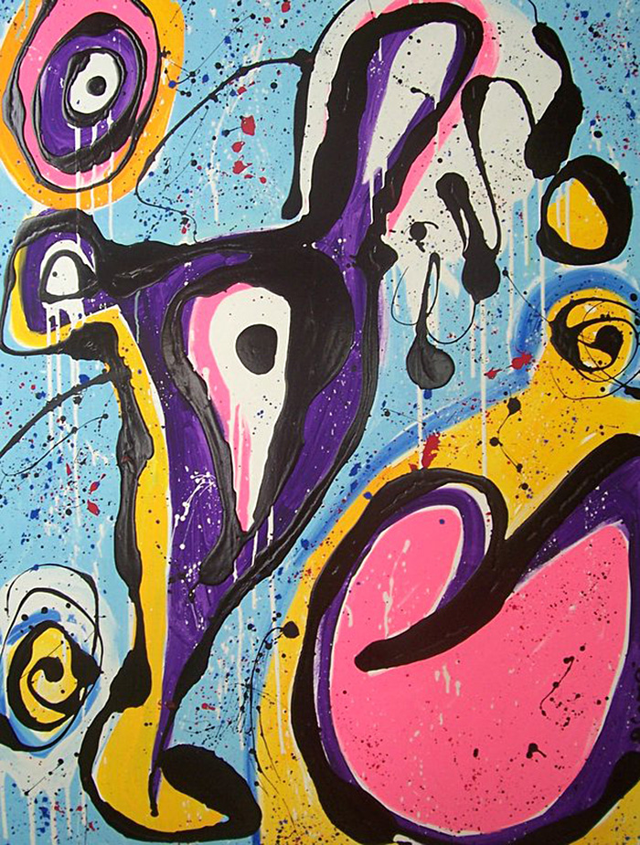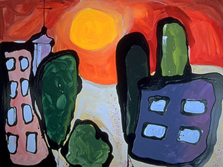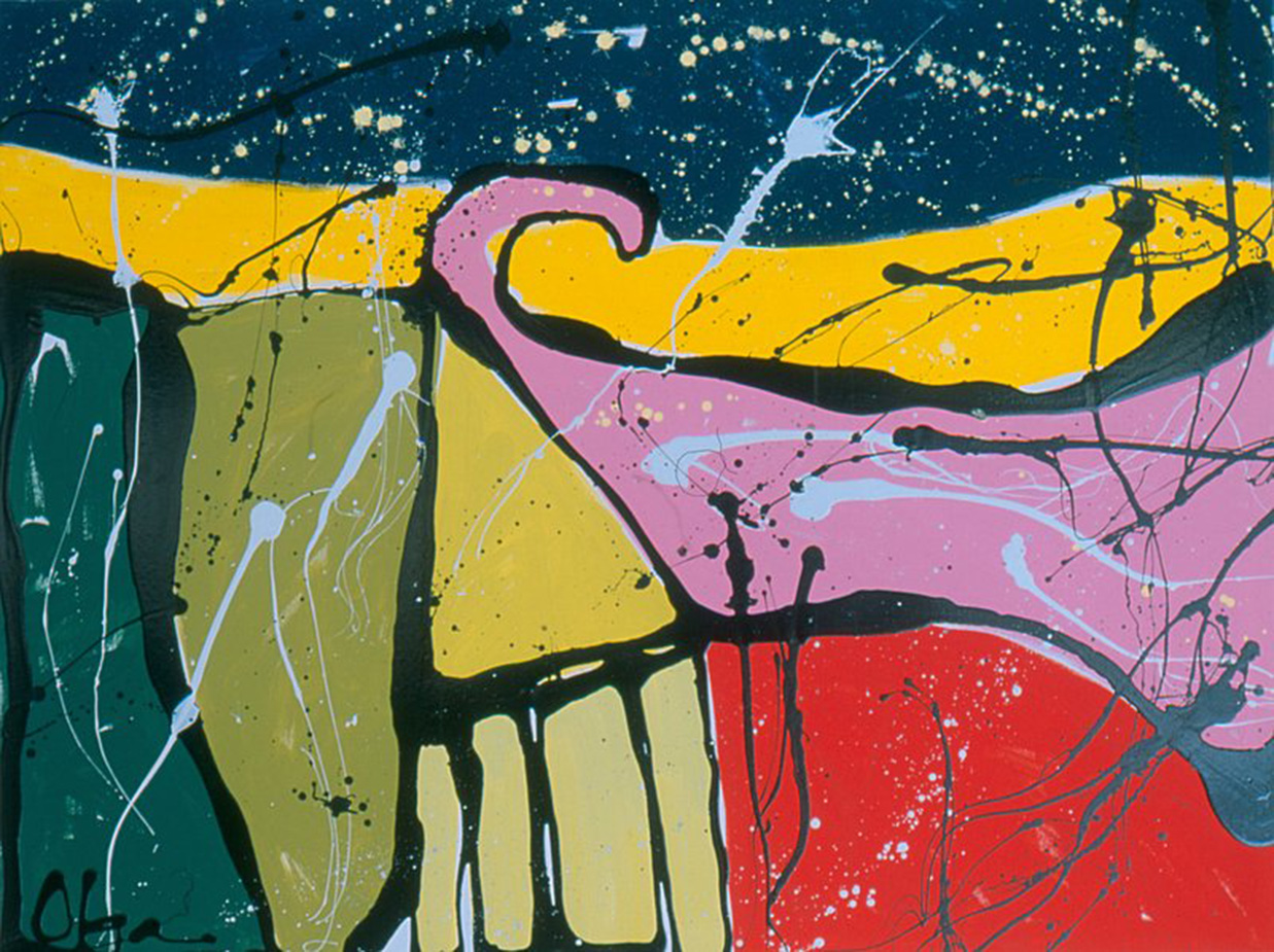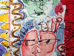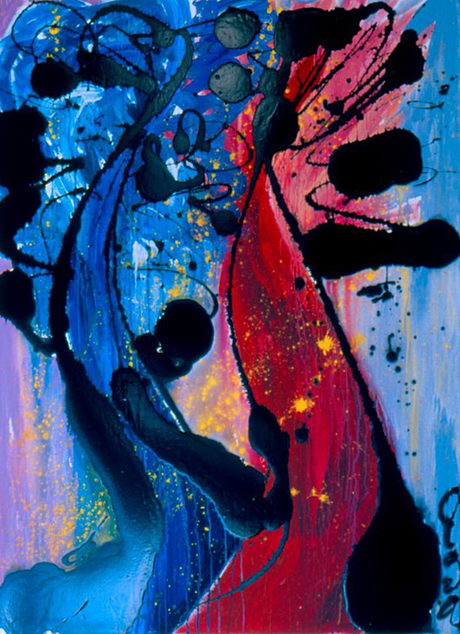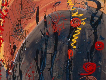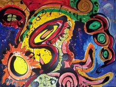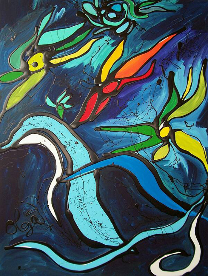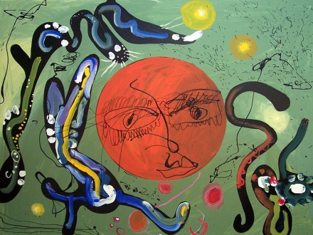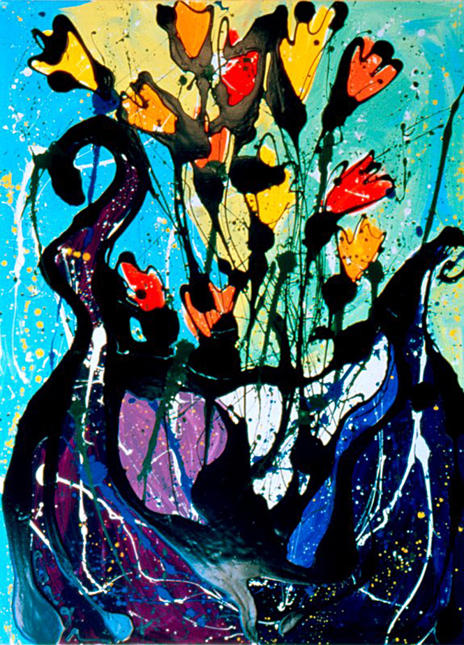 The broad and vivid fantesies depicted in a wonderful combination of rich colours and the emphatic black lines produce complex, intriguing forms that stimulate a viewer's imagination.