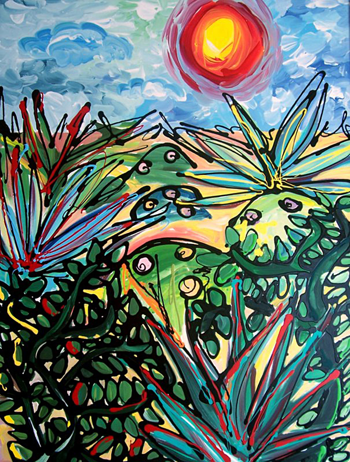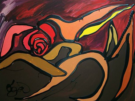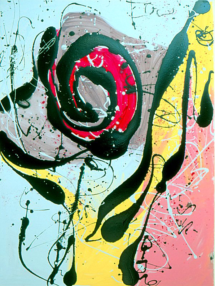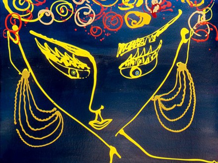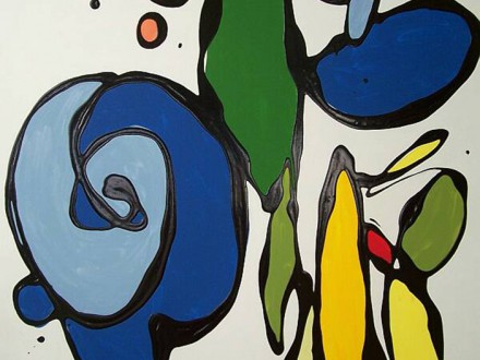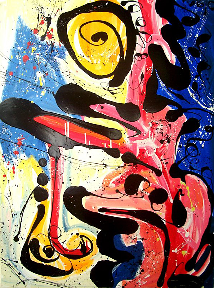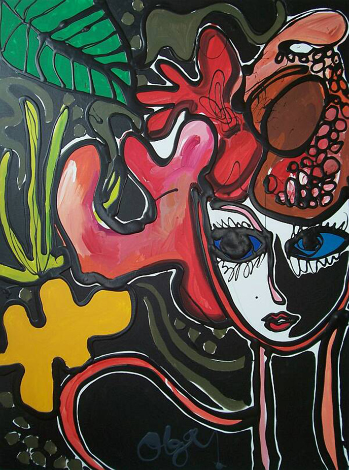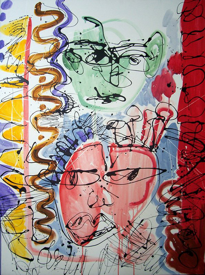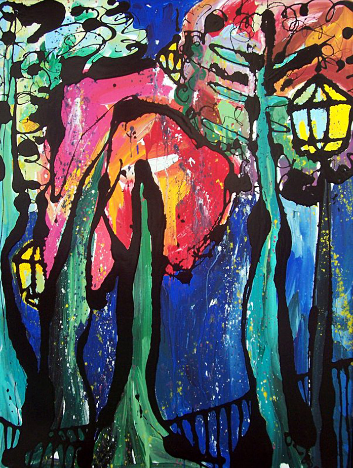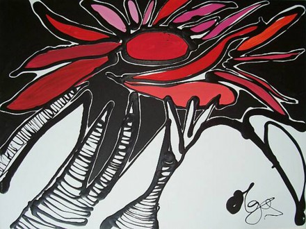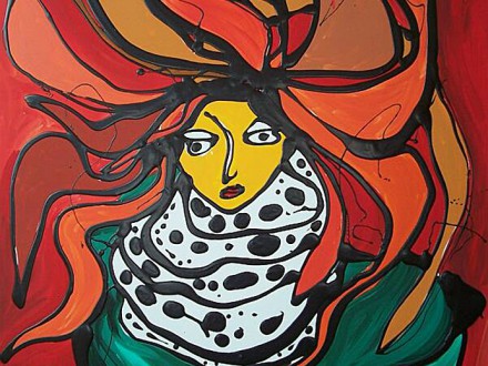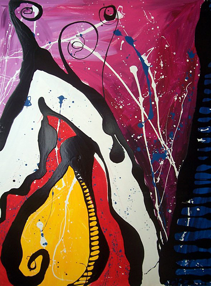 The broad and vivid fantesies depicted in a wonderful combination of rich colours and the emphatic black lines produce complex, intriguing forms that stimulate a viewer's imagination.