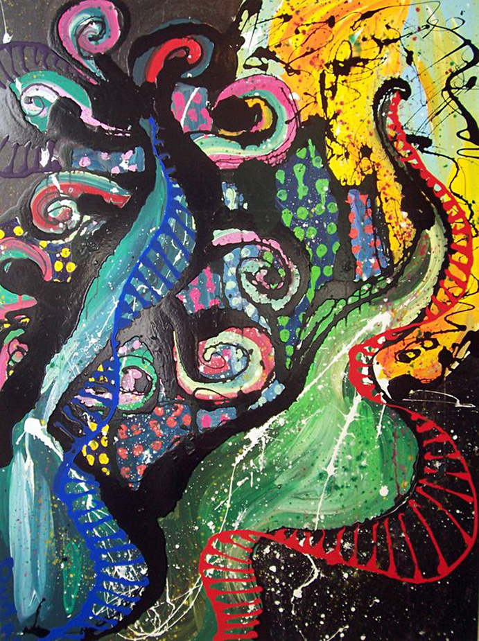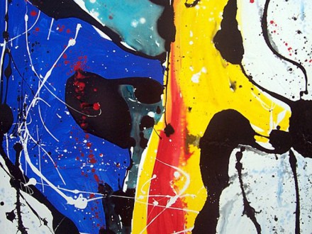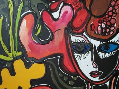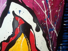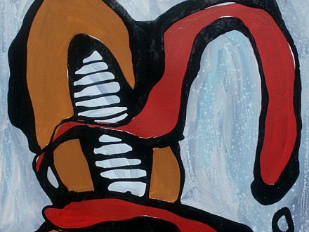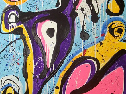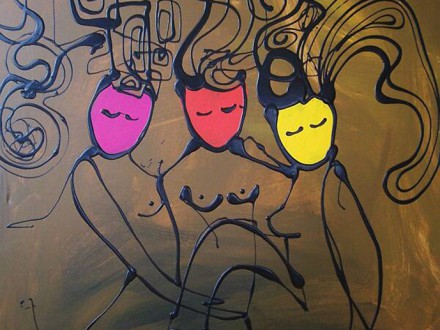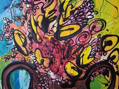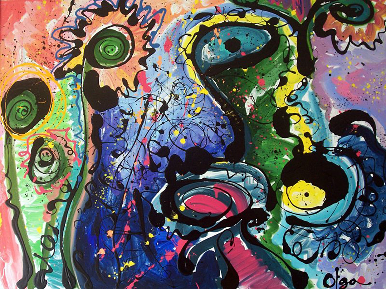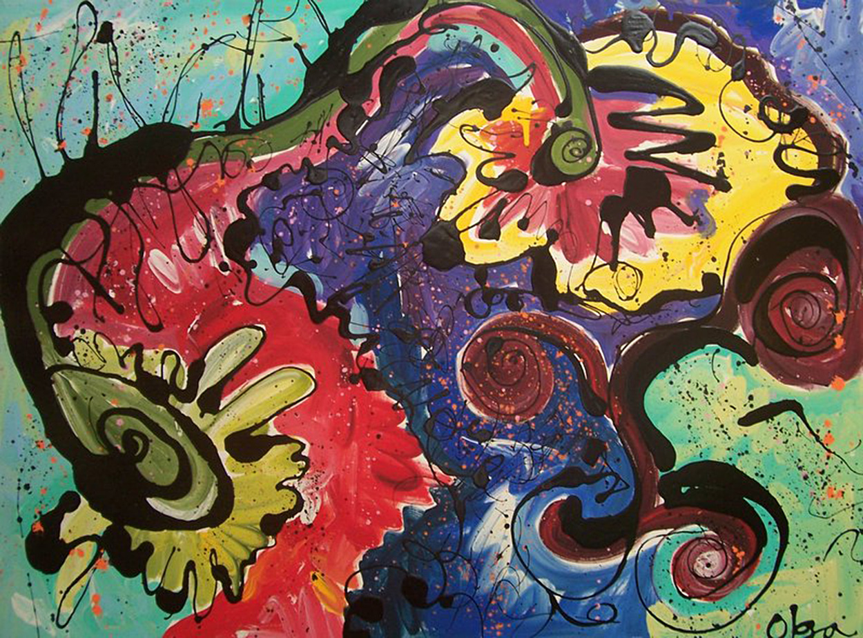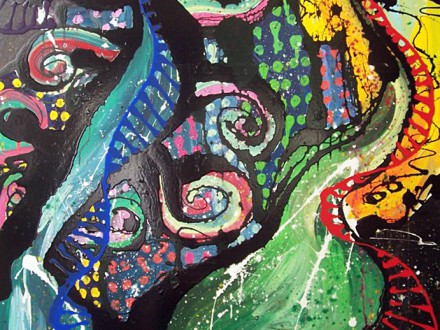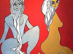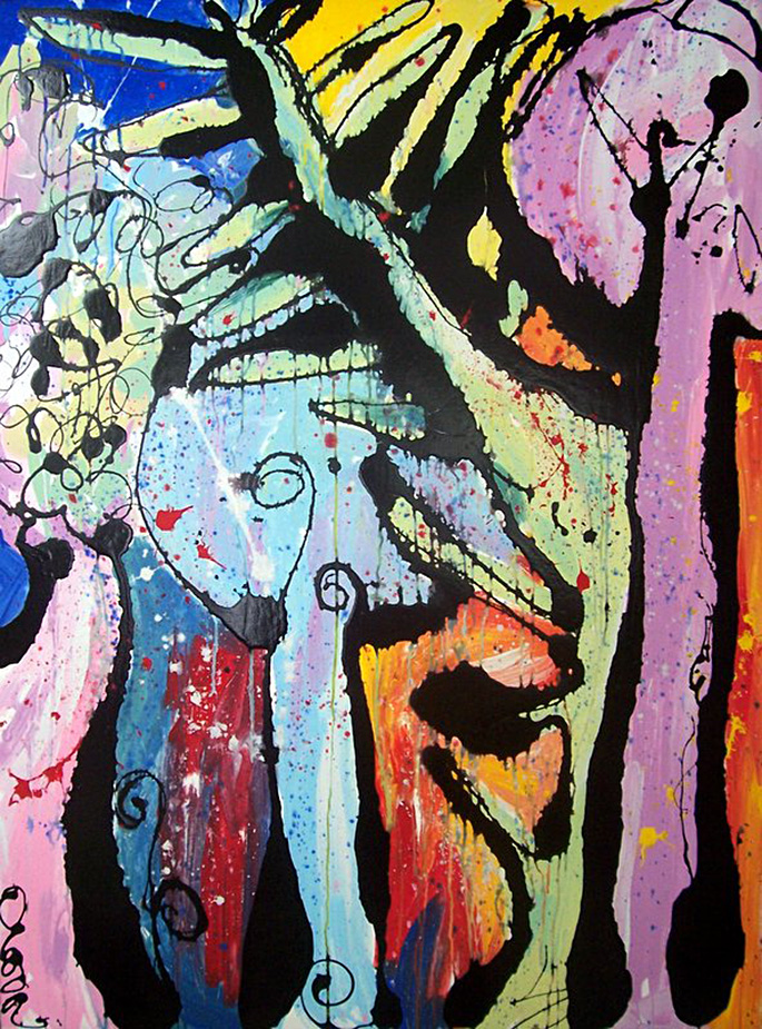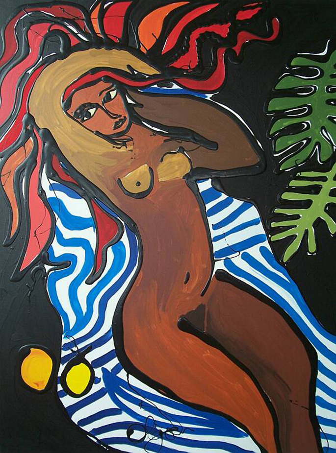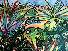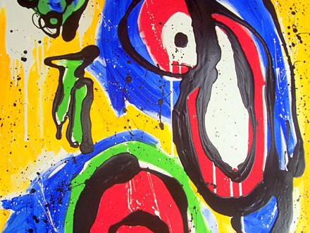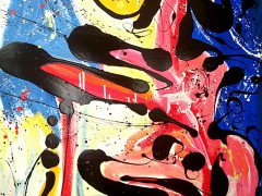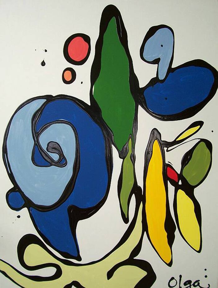 The broad and vivid fantesies depicted in a wonderful combination of rich colours and the emphatic black lines produce complex, intriguing forms that stimulate a viewer's imagination.