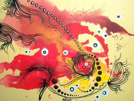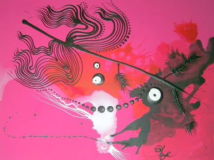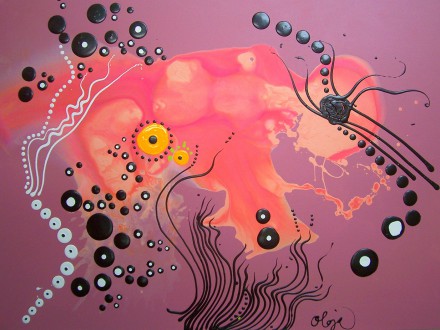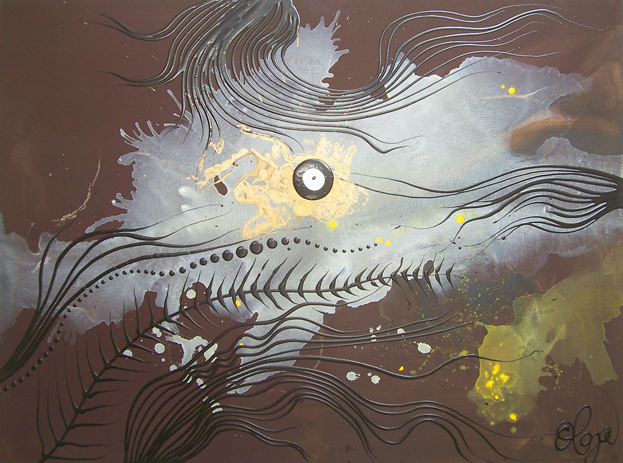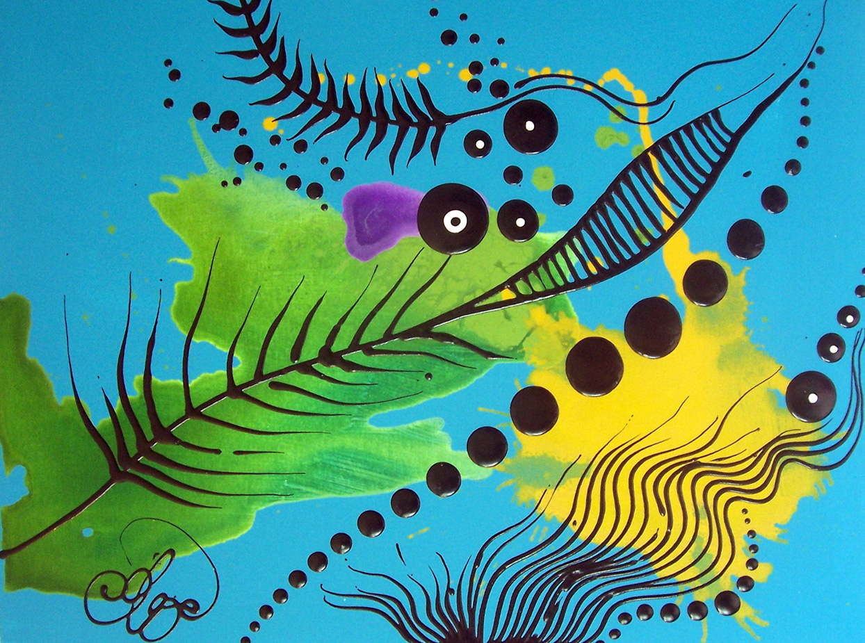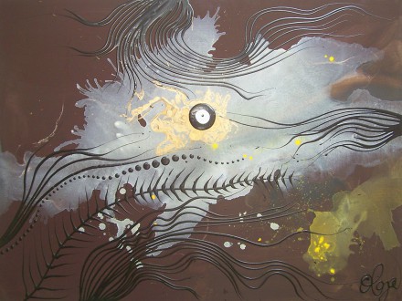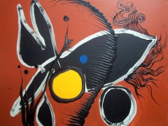 The broad and vivid fantesies depicted in a wonderful combination of rich colours and the emphatic black lines produce complex, intriguing forms that stimulate a viewer's imagination.