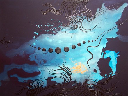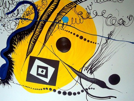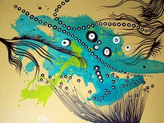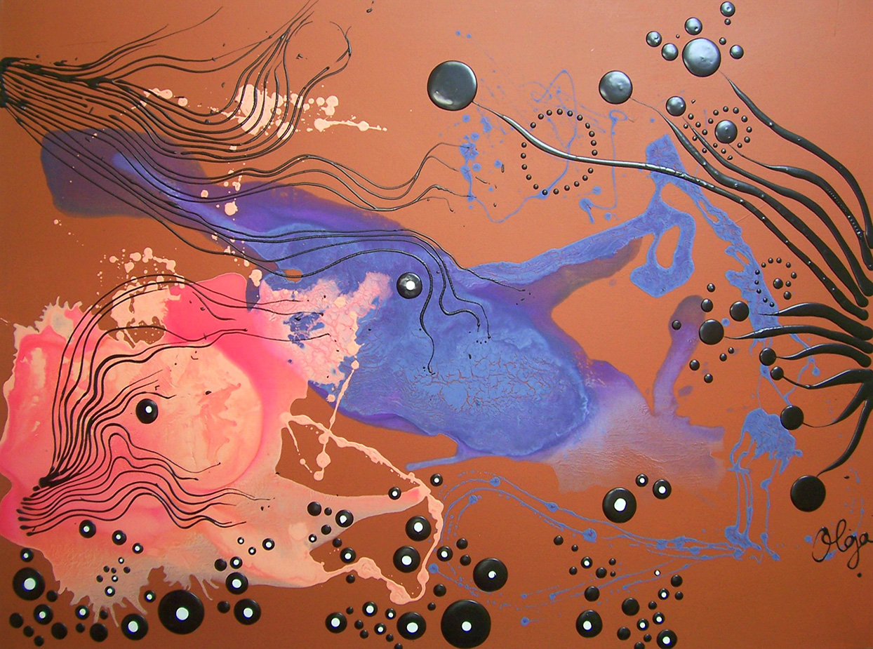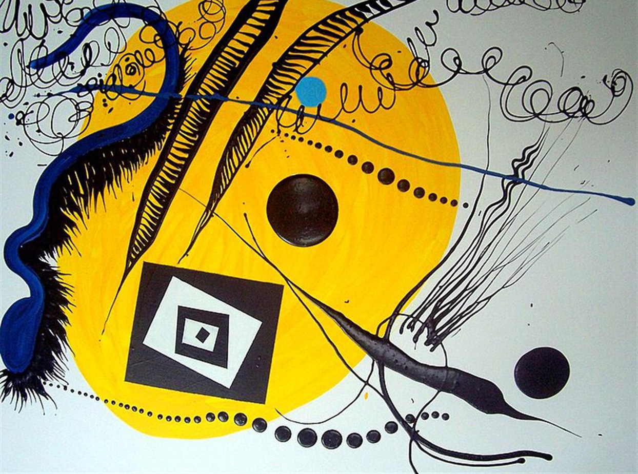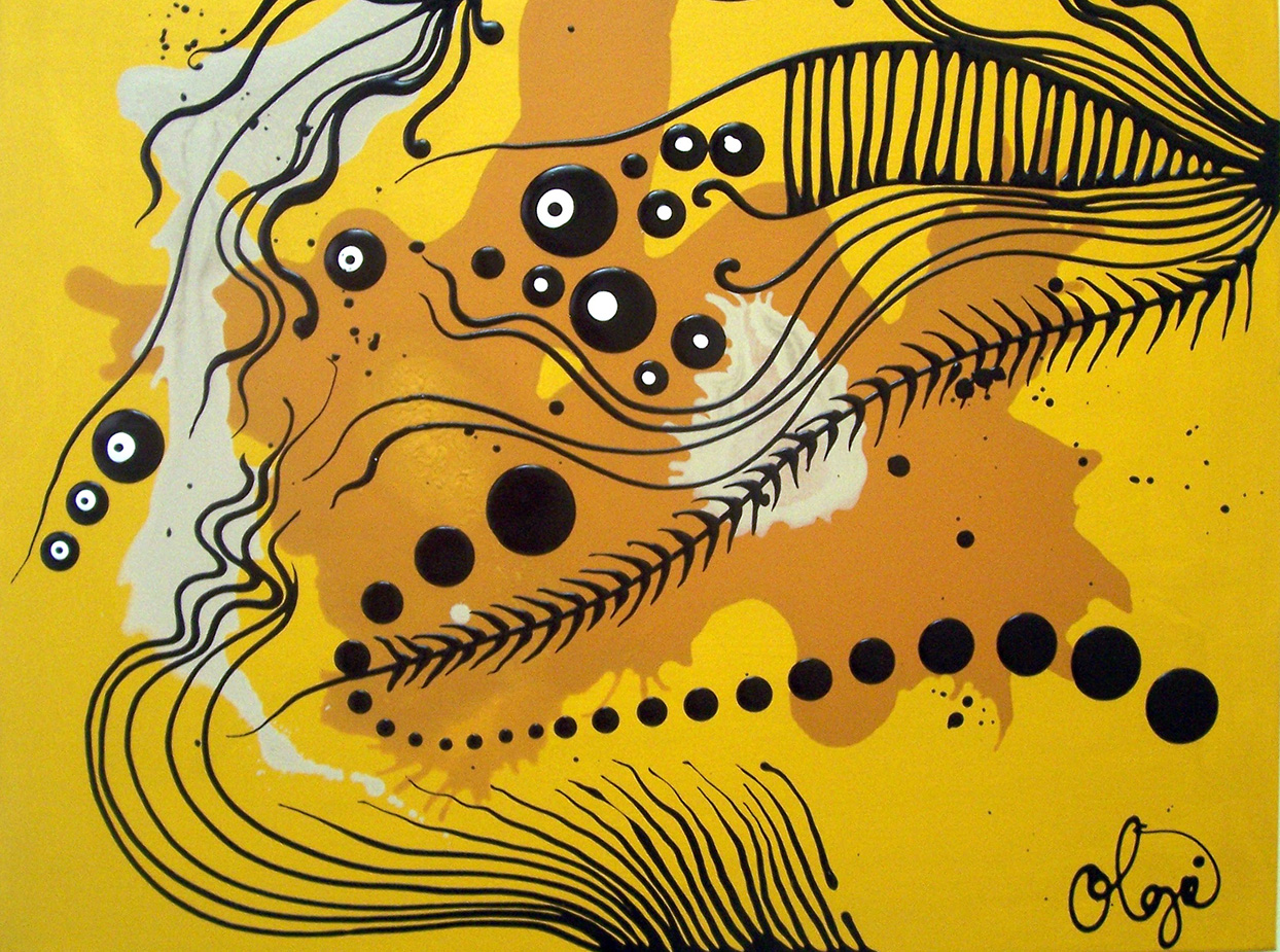 The broad and vivid fantesies depicted in a wonderful combination of rich colours and the emphatic black lines produce complex, intriguing forms that stimulate a viewer's imagination.